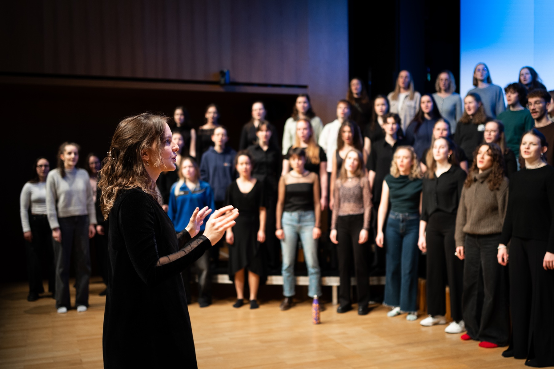 Nach der Pause trat Voices in waldfarbenen Grün- und Brauntönen auf. In diesem Teil führten wir auch mehrere Pop-Nummern auf, darunter When the Party’s Over und Some Nights. Außerdem präsentierten wir das von Julia Schelling arrangierte Stück Faith, das sich bereits jetzt als neuer VOICES-Party-Hit etabliert – vielen Dank, Julia!