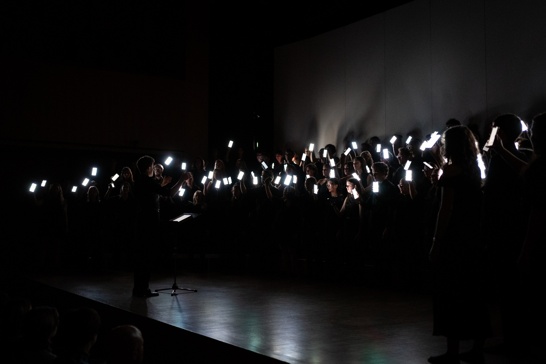 Unter dem Titel „Mysterious Voices“ gestalteten wir unsere drei ausverkauften Konzerte im Ambach in Götzis und im Angelika-Kauffmann-Saal in Schwarzenberg. Zu Beginn wurde der Saal vollständig abgedunkelt, und wir eröffneten den Abend mit Past Life Melodies. Daran anschließend folgten Werke wie Fire, Dies irae oder auch The Hymn of Acxiom bei welchem unsere Handys eine Rolle spielten.